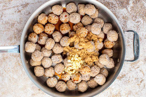 Add the frozen meatballs to a large skillet and set it over medium heat.